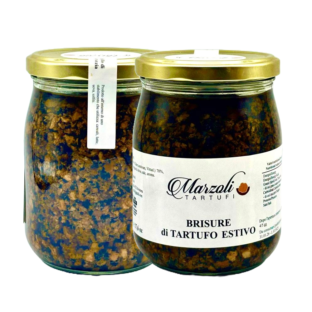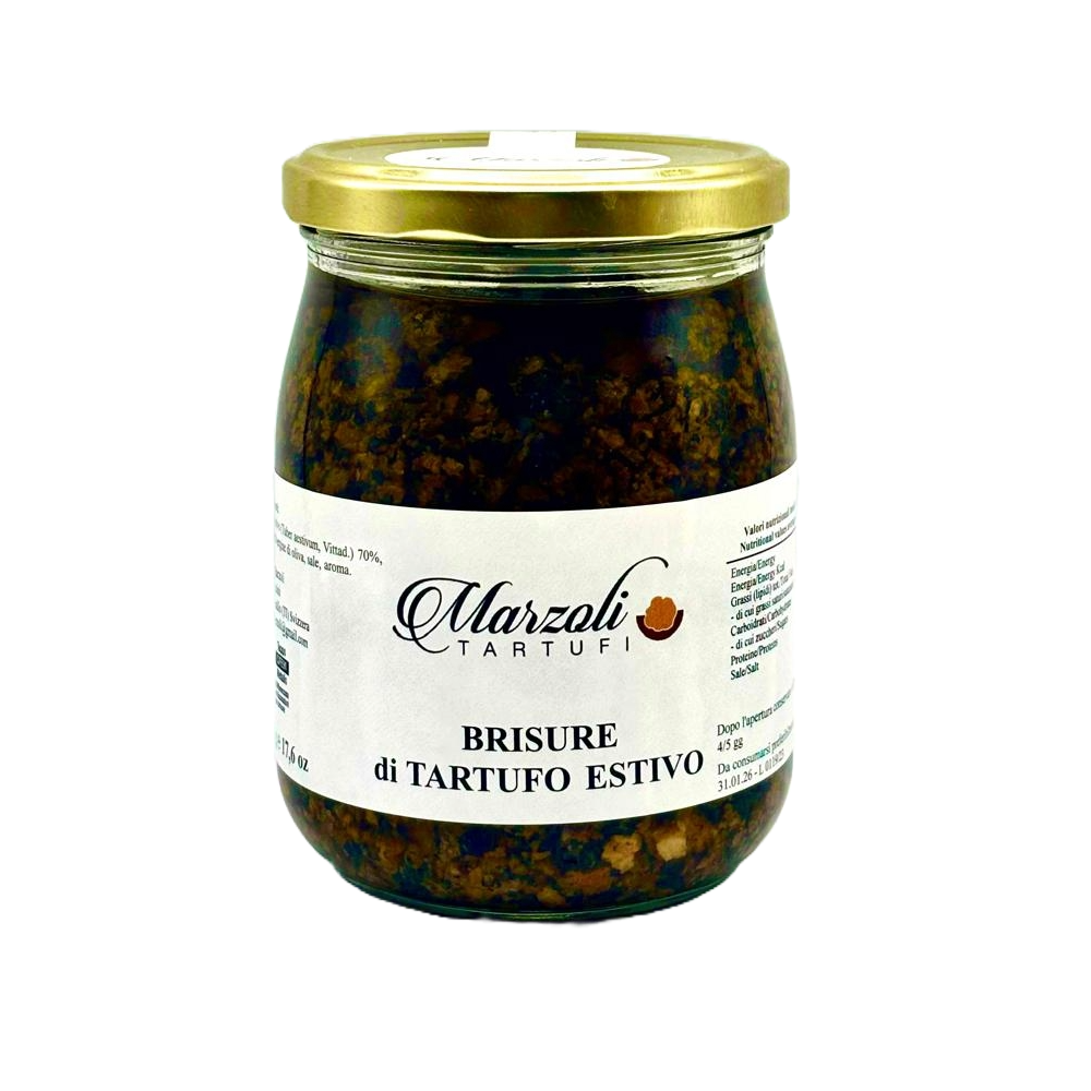 The Summer Truffle Brisure are the result of a meticulous selection of fine fragments of summer truffle, chosen to guarantee the highest quality and aromatic intensity. These brisures, rich in earthy complexity and aromatic nuances, are ideal for elevating gourmet dishes with a touch of authenticity and refinement. Perfect for enrich risottos, fresh pasta, or as a garnish on meat and fish, brisure integrate splendidly into preparations that require a pure and intense truffle aroma.