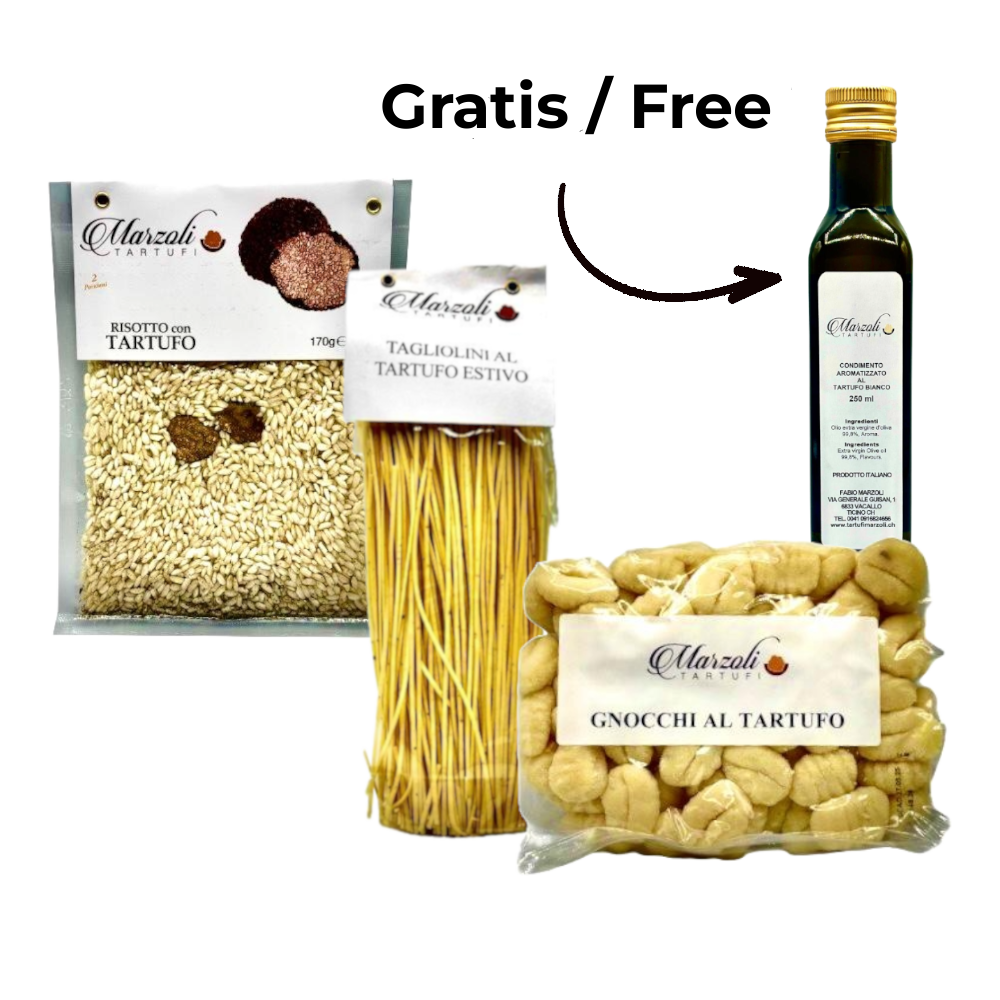 A kit designed for those who want to bring truffles to the table in all their forms, with simplicity and flavor. Three iconic first courses, revisited with a gourmet twist, for an experience steeped in elegance and tradition.