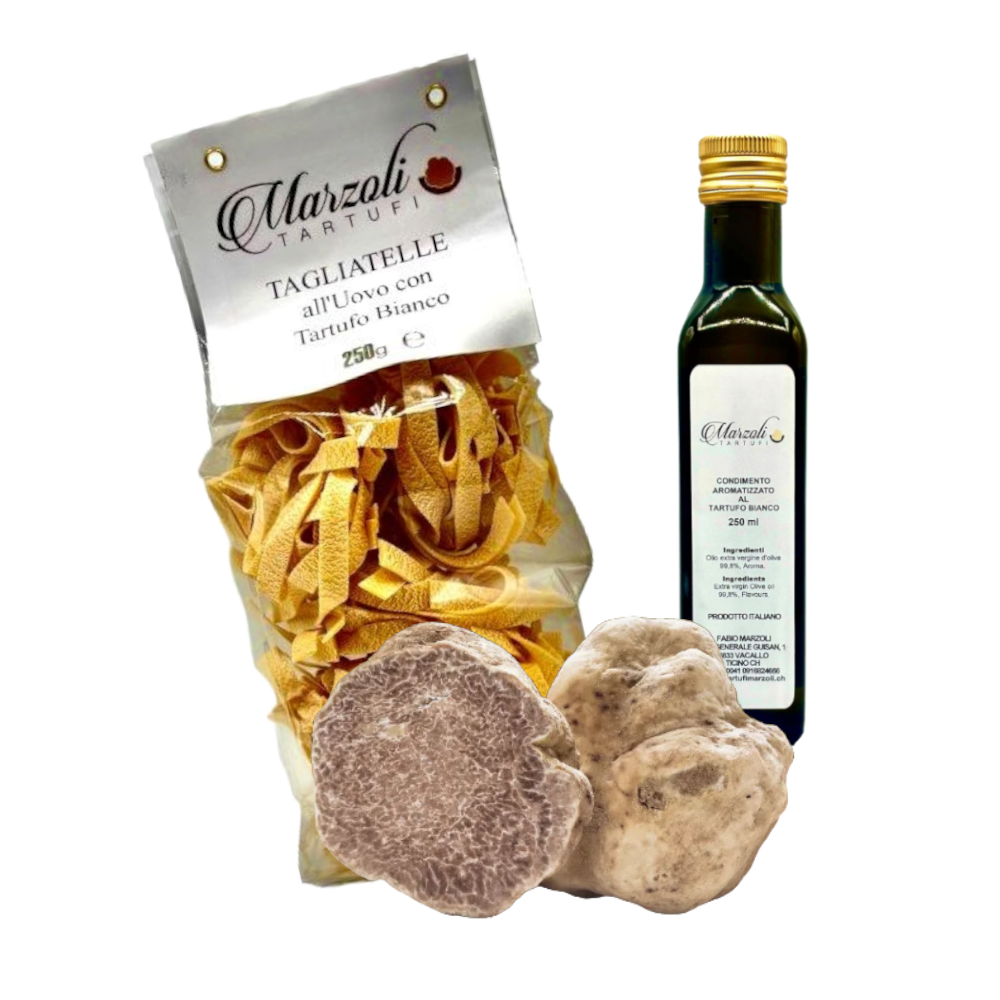 A refined kit, designed for those who want to experience all the elegance of the white truffle in a simple yet effective combination. Three excellent ingredients that, together, create a dish with an unforgettable flavor.