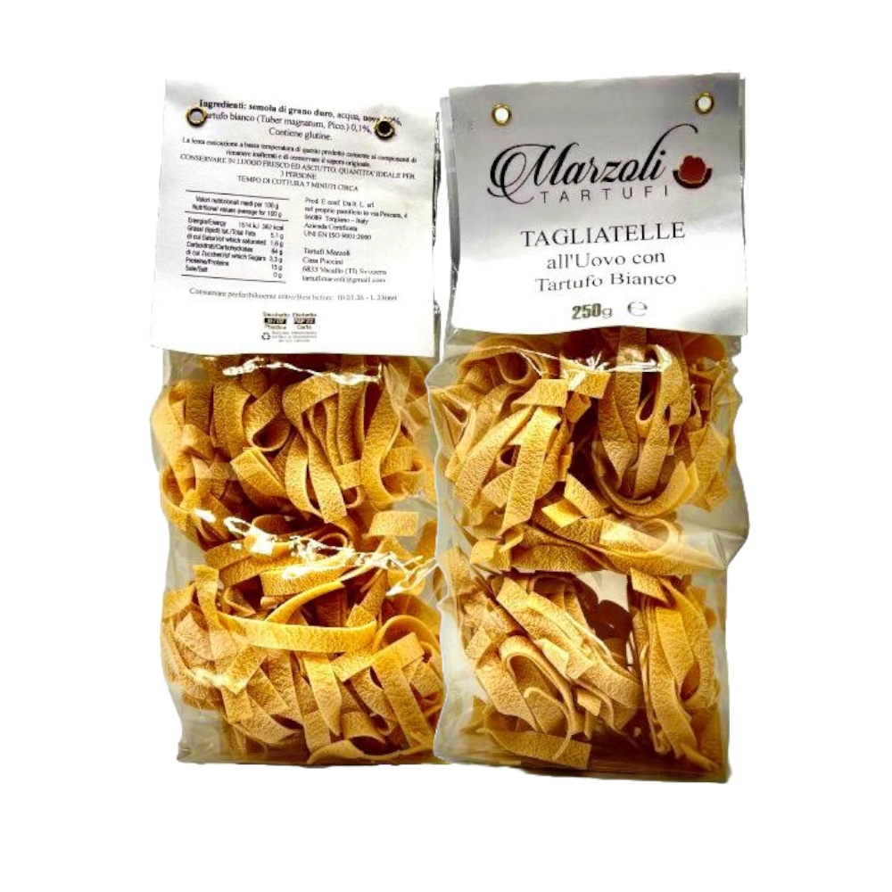 The soft consistency and fragrance of the white truffle make these tagliatelle perfect for holding creamy sauces or to be enjoyed simply with a drizzle of extra virgin olive oil. With the tagliatelle with white truffle you will be able to prepare an elegant and delicious dish in just a few minutes.