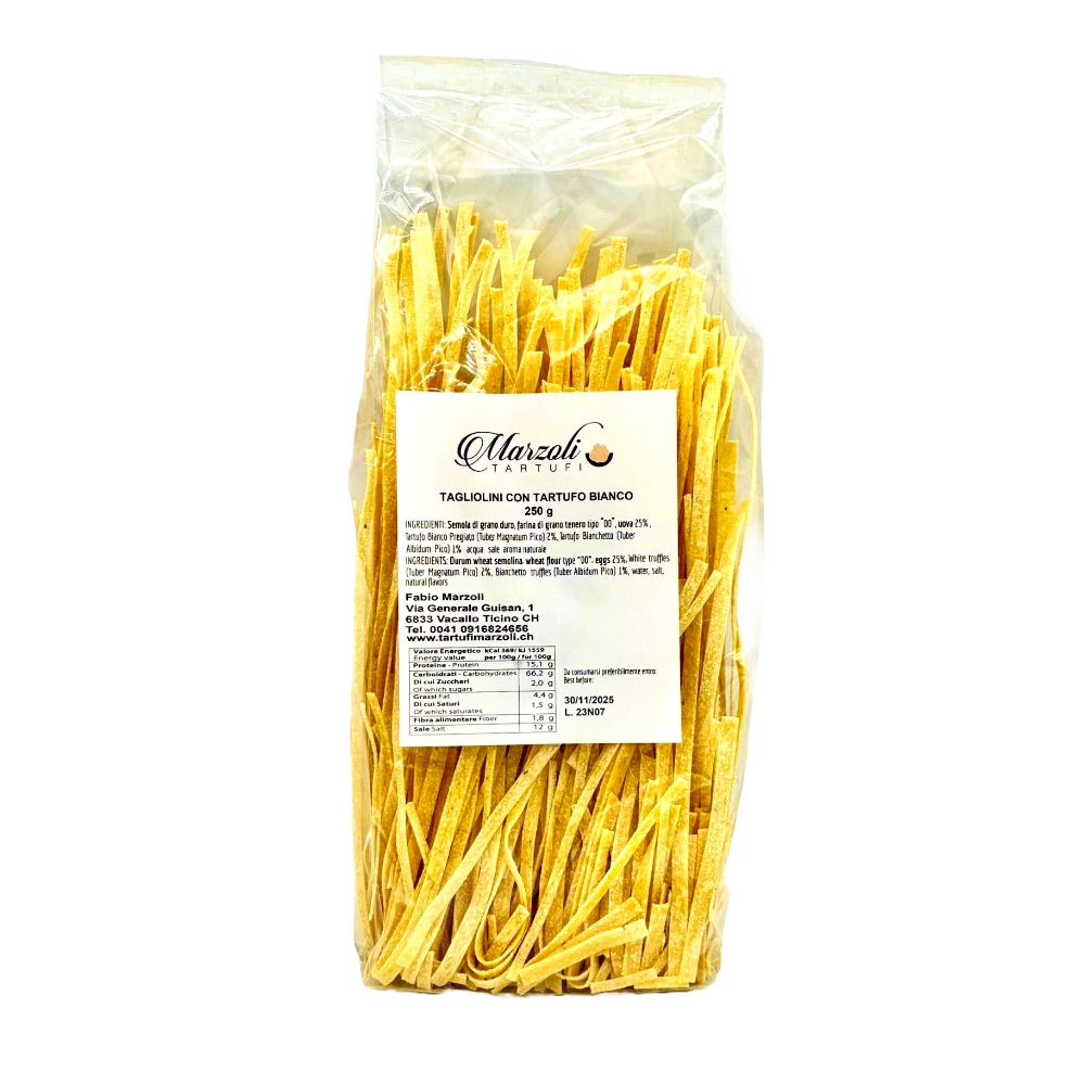 Bronze drawn and cut according to According to the tradition of Campofilone, these tagliolini are left to dry slowly and at a low temperature to eliminate any residual moisture. This allows the pasta to perfectly absorb the sauce and condiments. Its characteristics are thinness, elasticity, a delicate aroma and a intense flavor which in this case comes enhanced by our truffle. Quality raw materials to be cared for and pampered in the kitchen to bring to the table a unique and precious delicacy.