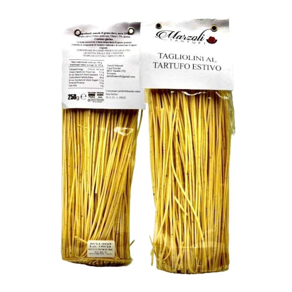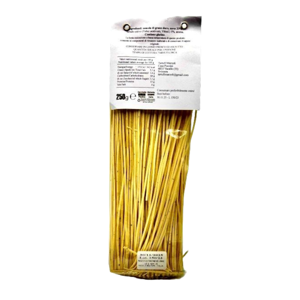 Ingredients: Durum wheat semolina, eggs 10%, summer truffle (Tuber aestivum Vitt.) 2%, water.