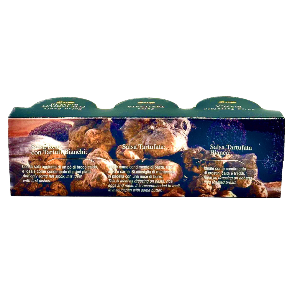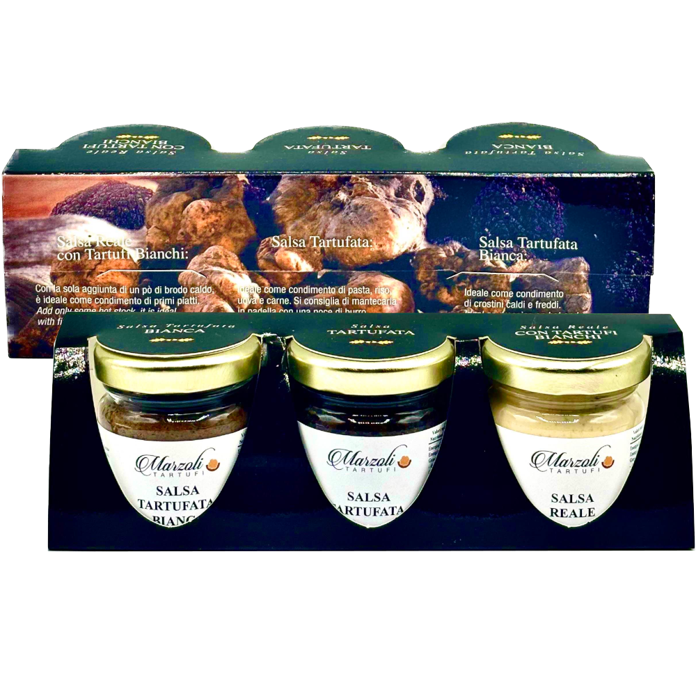 This exclusive selection includes three of our best creations: White Truffle, Truffle and Royal Sauce with White Truffles. “Trilogy” is the perfect gift for true lovers of good food and an invitation to explore the world of Marzoli Tartufi: a kaleidoscope of refined and unforgettable flavours.